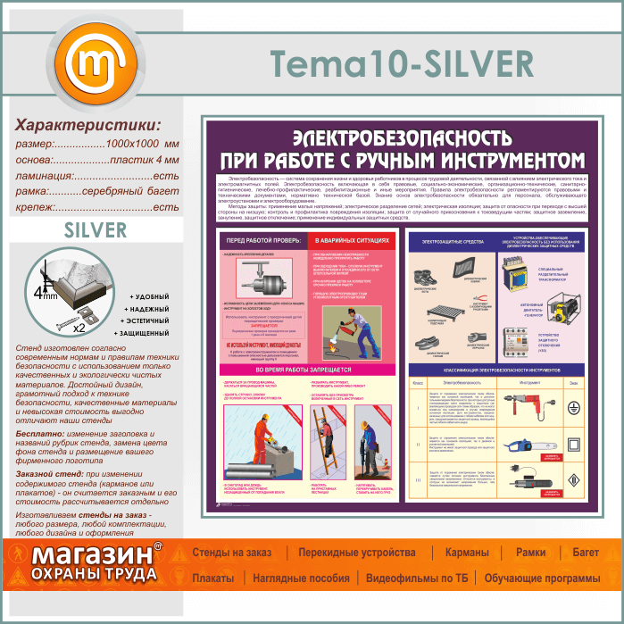Стенд «Электробезопасность при работе с ручным инструментом» (TM-10-SILVER) в Магнитогорске купить