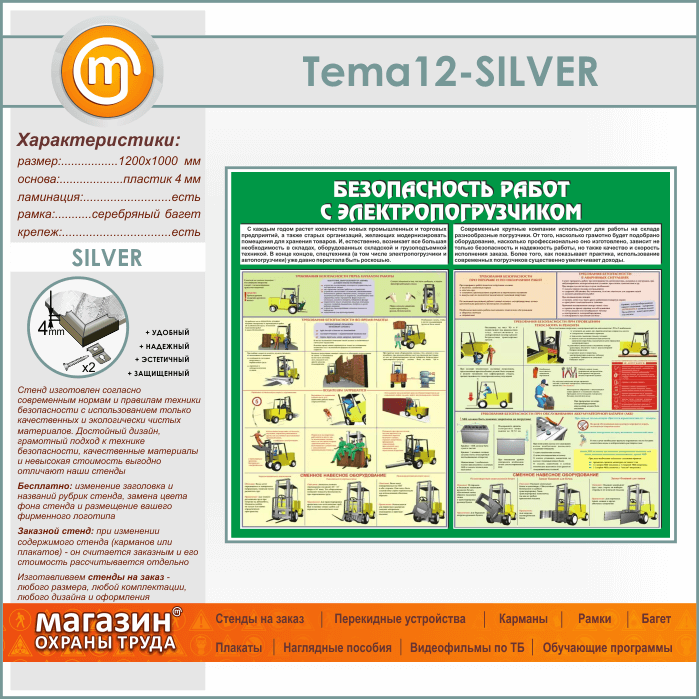 Стенд «Безопасность работ с электропогрузчиком» (TM-12-SILVER) в Магнитогорске купить
