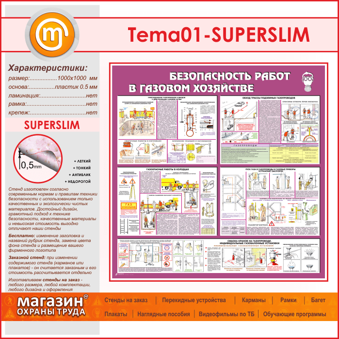 Стенд «Безопасность работ в газовом хозяйстве» (TM-01-SUPERSLIM) в Магнитогорске купить
