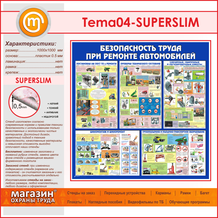 Стенд «Безопасность труда при ремонте автомобилей» (TM-04-SUPERSLIM) в Магнитогорске купить