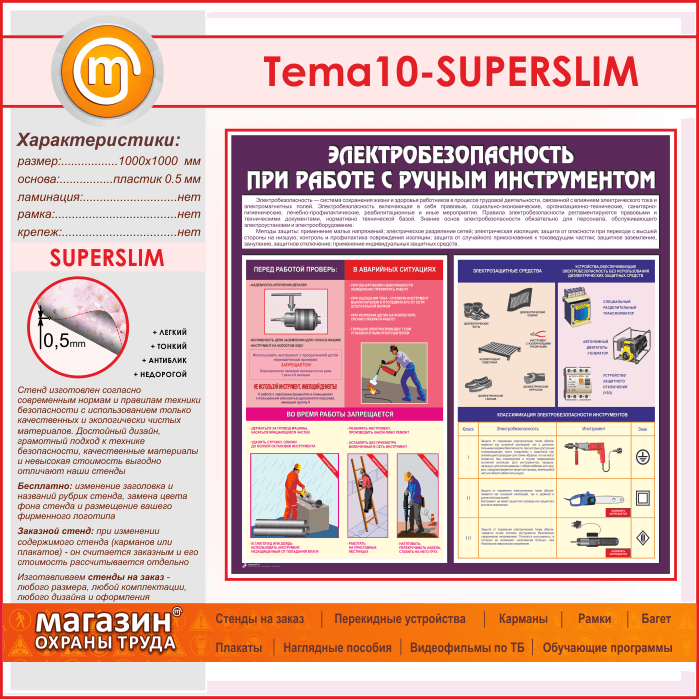Стенд «Электробезопасность при работе с ручным инструментом» (TM-10-SUPERSLIM) в Магнитогорске купить