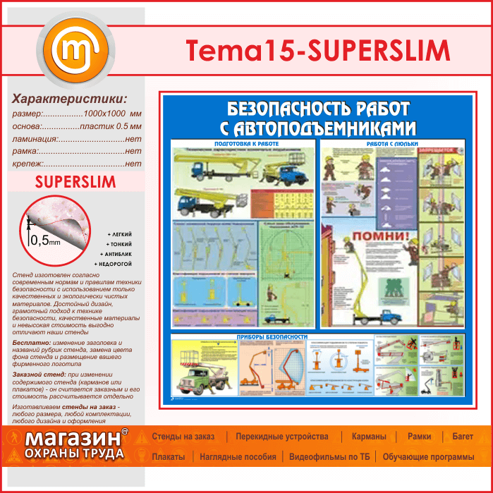 Стенд «Безопасность работ с автоподъемниками» (TM-15-SUPERSLIM) в Магнитогорске купить