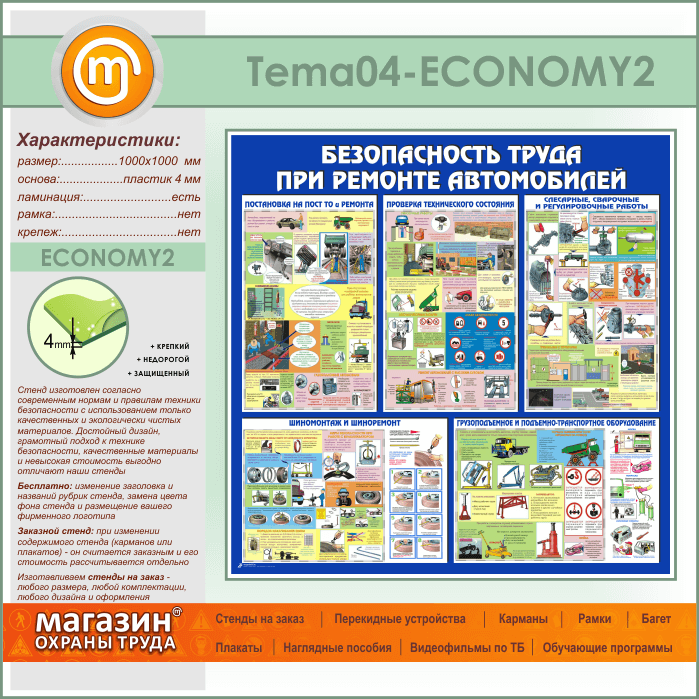 Стенд «Безопасность труда при ремонте автомобилей» (TM-04-ECONOMY2) в Магнитогорске купить