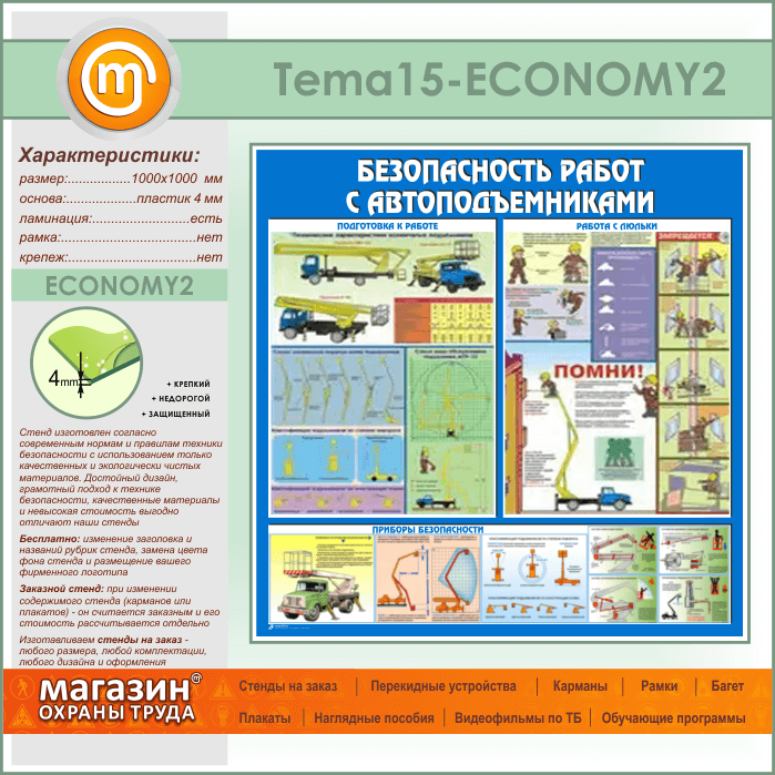 Стенд «Безопасность работ с автоподъемниками» (TM-15-ECONOMY2) в Магнитогорске купить