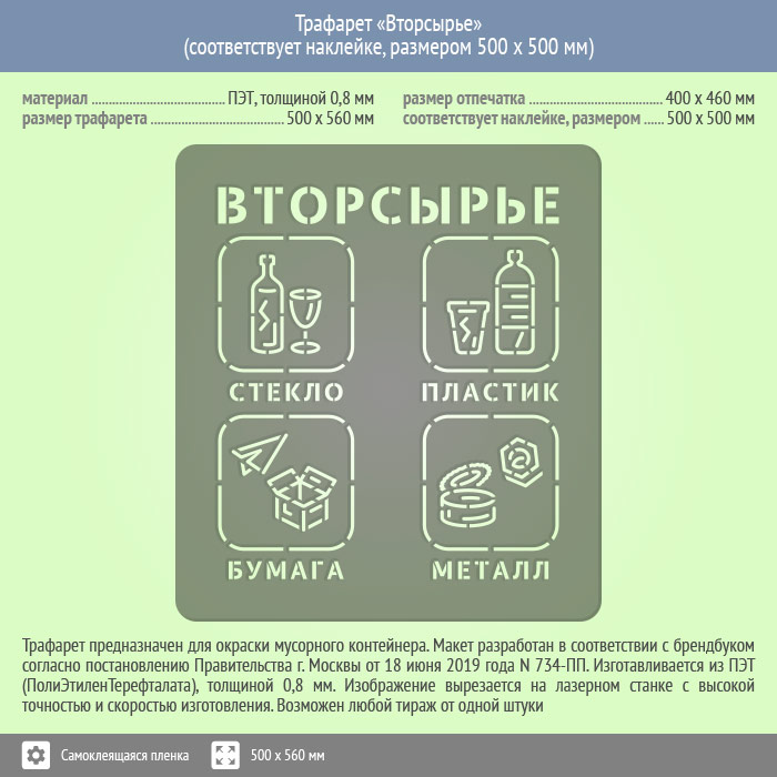 Трафарет «Вторсырье» (соответствует наклейке, размером 500х500 мм) в Магнитогорске купить