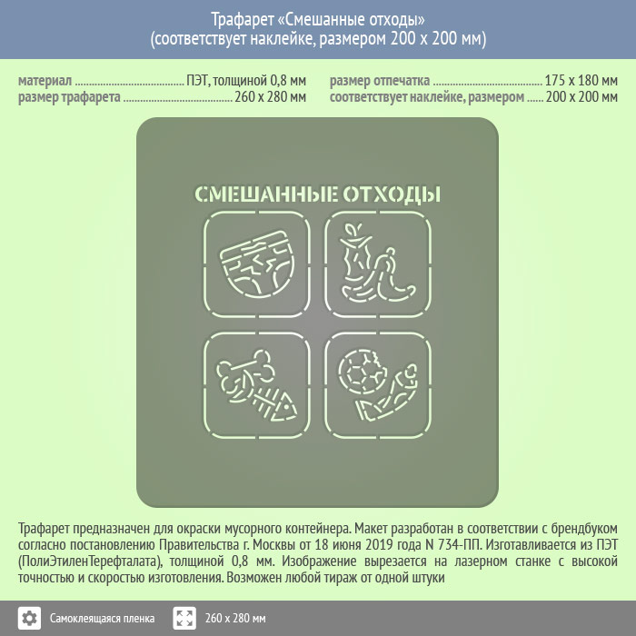 Трафарет «Смешанные отходы» (соответствует наклейке, размером 200х200 мм) в Магнитогорске купить