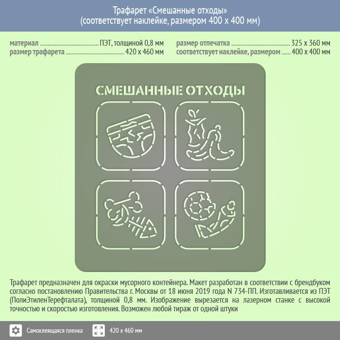 Трафарет «Смешанные отходы» (соответствует наклейке, размером 400х400 мм) в Магнитогорске купить
