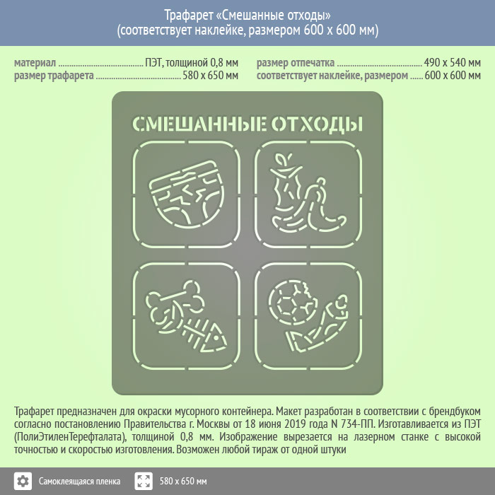 Трафарет «Смешанные отходы» (соответствует наклейке, размером 600х600 мм) в Магнитогорске купить