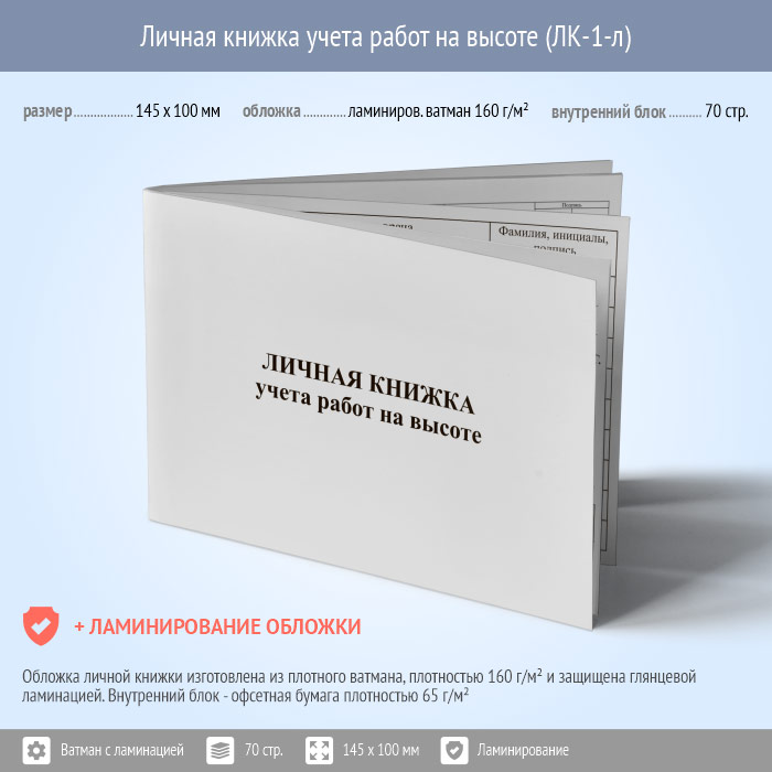 Личная книжка учета работ на высоте (с ламинир. обложки и заполнением, ЛК-1-лз) | Личная книжка учета работ на высоте (с ламинир. обложки и заполнением, ЛК-1-лз) |