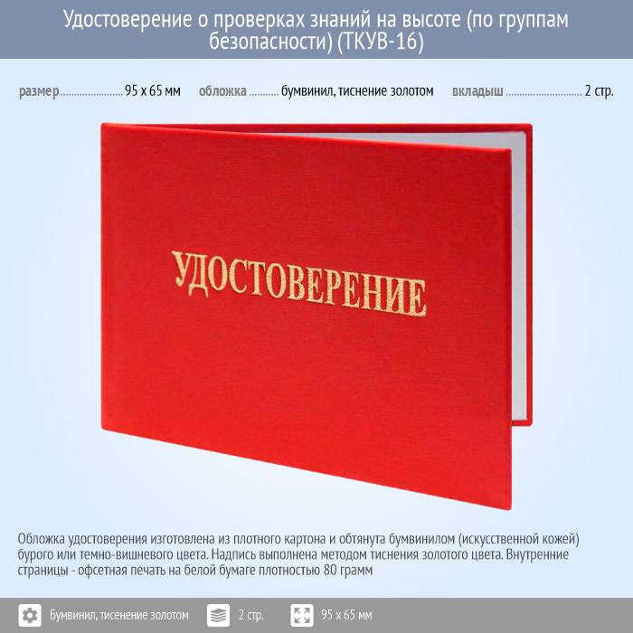 Бланк удостоверения о проверках знаний на высоте (по группам безопасности) (ТКУВ-16) в Магнитогорске купить