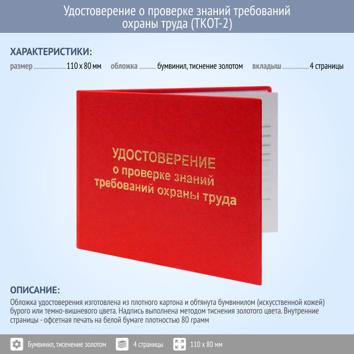 Бланк удостоверения о проверке знаний требований охраны труда (ТКОТ-2) в Магнитогорске купить