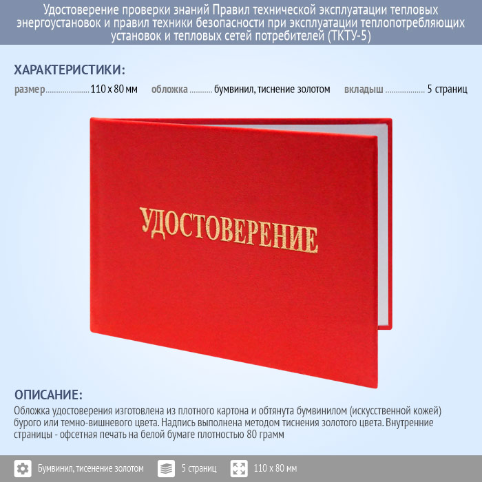 Бланк удостоверения проверки знаний Правил технической эксплуатации тепловых энергоустановок и правил техники безопасности при эксплуатации теплопотребляющих установок и тепловых сетей потребителей (ТКТУ-5) в Магнитогорске купить