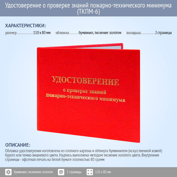 Бланк удостоверения о проверке знаний пожарно-технического минимума (ТКПМ-6) в Магнитогорске купить
