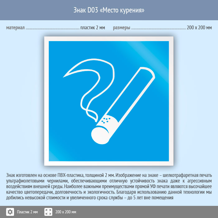 Знак D03 «Место курения» (пластик, 200х200 мм) в Магнитогорске купить