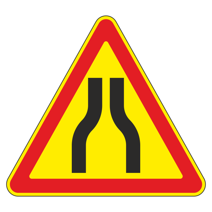 Дорожный знак 1.20.1 «Сужение дороги» (временный) (металл 0,8 мм, II типоразмер: сторона 900 мм, С/О пленка: тип А коммерческая) в Магнитогорске купить