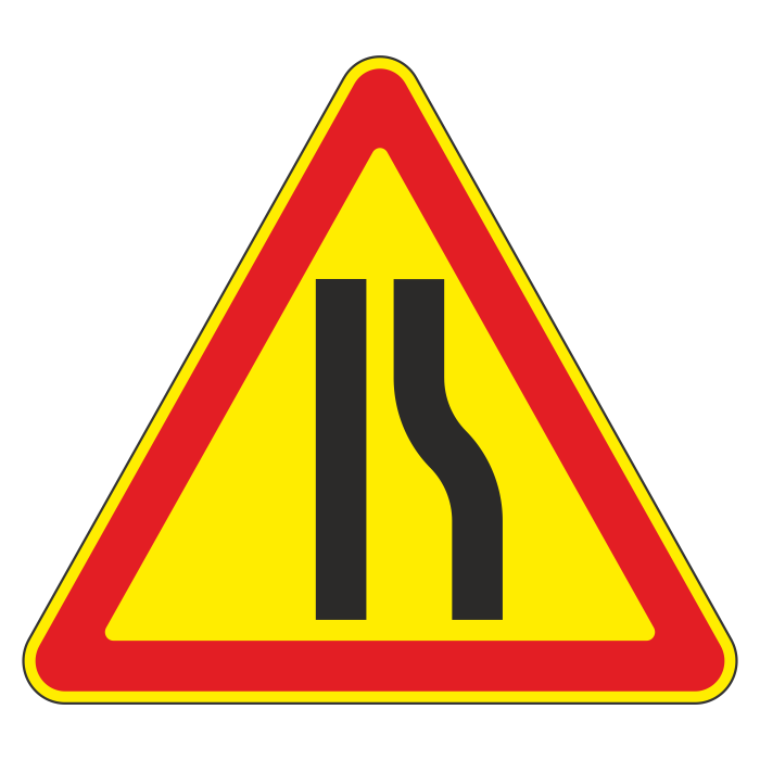 Дорожный знак 1.20.2 «Сужение дороги» (временный) (металл 0,8 мм, III типоразмер: сторона 1200 мм, С/О пленка: тип В алмазная) в Магнитогорске купить