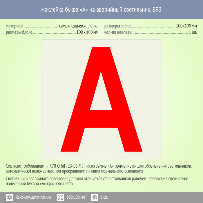 Наклейка буква «А» на аварийный светильник, B93 (пленка, 100х100 мм) в Магнитогорске купить