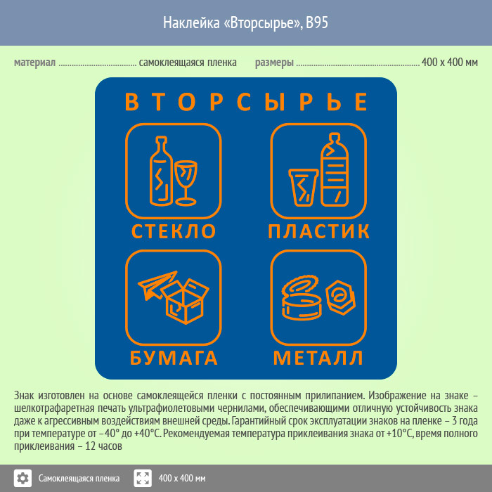 Наклейка на бак «Вторсырьё», B95 (пленка, 400х400 мм) в Магнитогорске купить