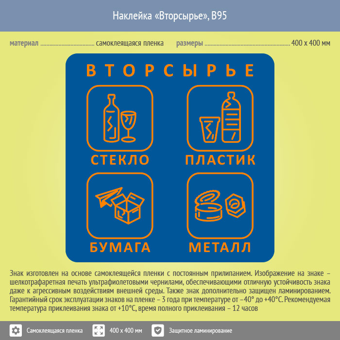 Наклейка на бак «Вторсырьё», B95 (пленка c ламинированием, 400х400 мм) в Магнитогорске купить