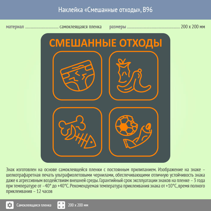 Наклейка на бак «Смешанные отходы», B96 (пленка, 200х200 мм) в Магнитогорске купить