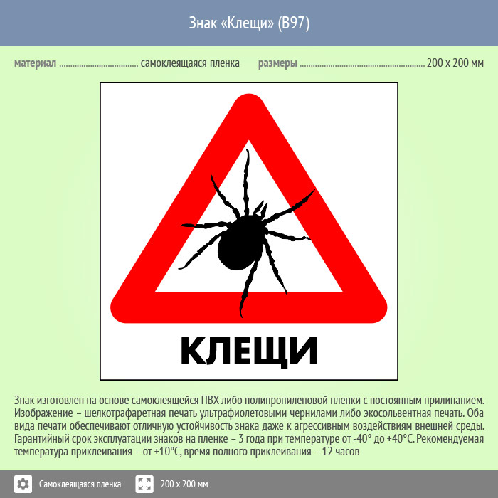 Знак «Клещи», B97 (пленка, 300х300 мм) в Магнитогорске купить