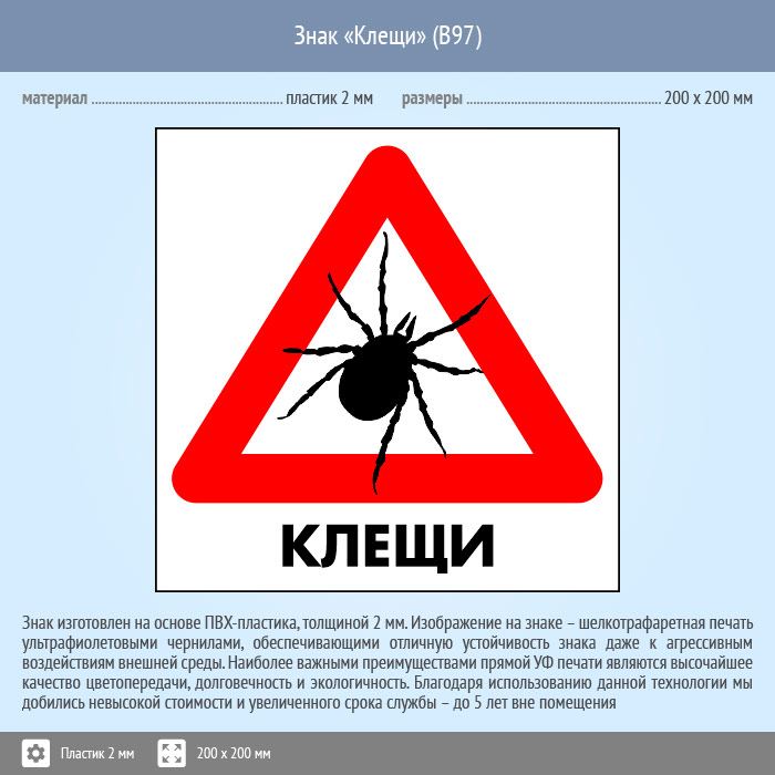 Знак «Клещи», B97 (пластик, 300х300 мм) в Магнитогорске купить