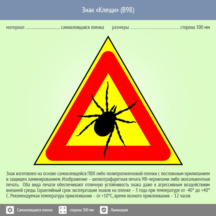 Знак «Клещи», B98 (пленка c ламинированием, сторона 200 мм) в Магнитогорске купить