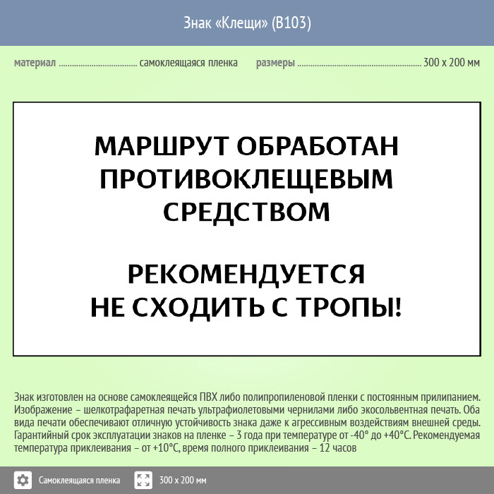 Знак «Клещи», B103 (пленка, 400х300 мм) в Магнитогорске купить
