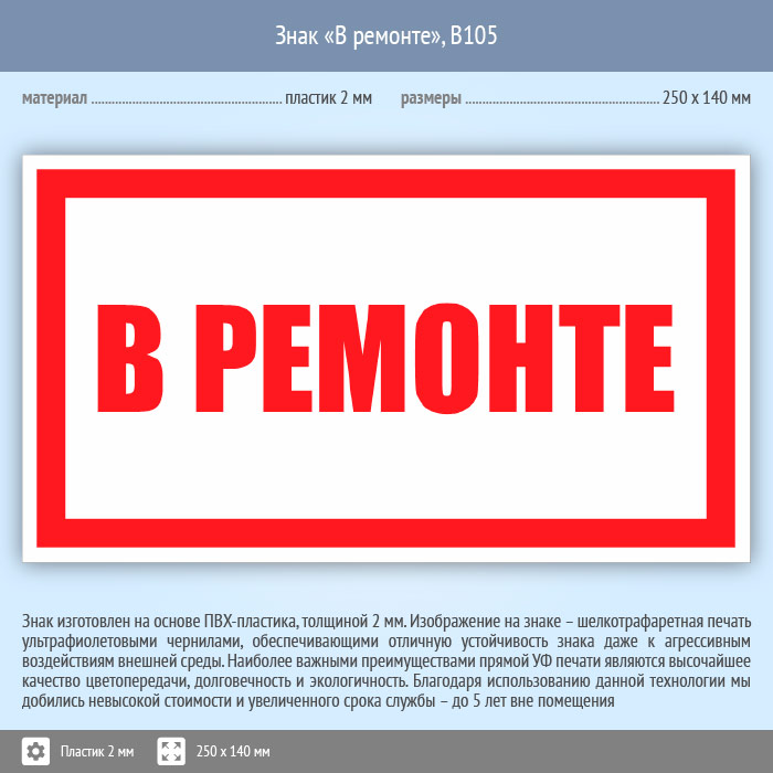 Знак «В ремонте», B105 (пластик, 250х140 мм) в Магнитогорске купить