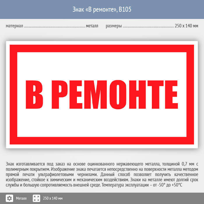 Знак «В ремонте», B105 (металл, 250х140 мм) в Магнитогорске купить