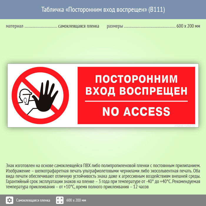Табличка «Посторонним вход воспрещен», B111 (пленка, 600х200 мм) в Магнитогорске купить