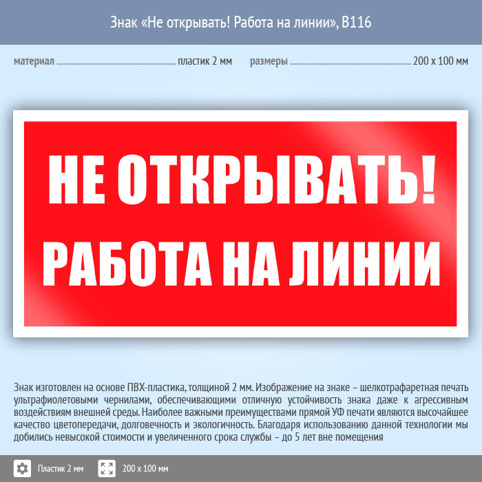 Знак «Не открывать! Работа на линии», B116 (пластик, 200х100 мм) в Магнитогорске купить