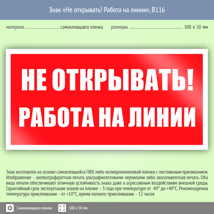 Знак «Не открывать! Работа на линии», B116 (пленка, 100х50 мм) в Магнитогорске купить