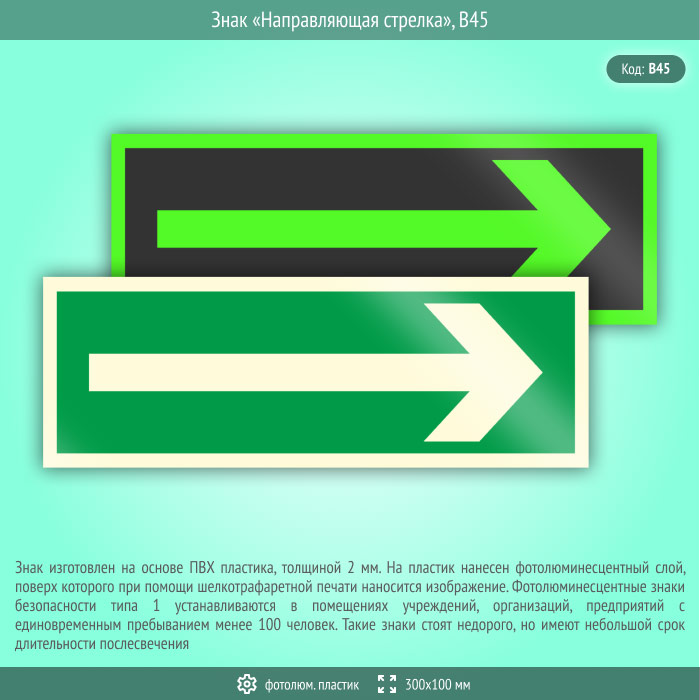 Знак «Направляющая стрелка», B45 (фотолюминесцентный пластик, 300х100 мм) в Магнитогорске купить