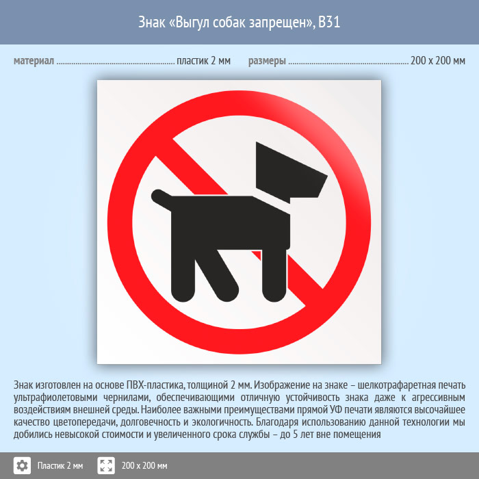 Знак «Выгул собак запрещен», B31 (пластик, 200х200 мм) в Магнитогорске купить
