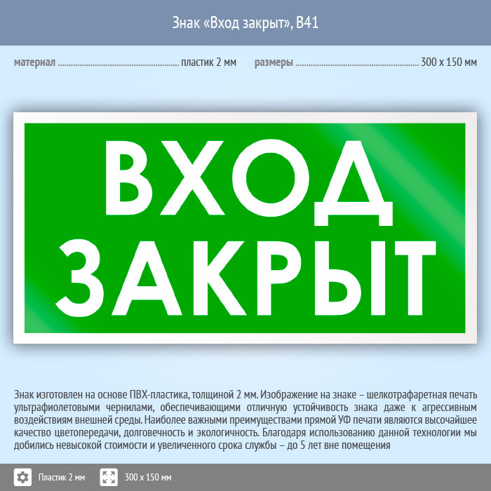 Знак «Вход закрыт», B41 (пластик, 300х150 мм) в Магнитогорске купить
