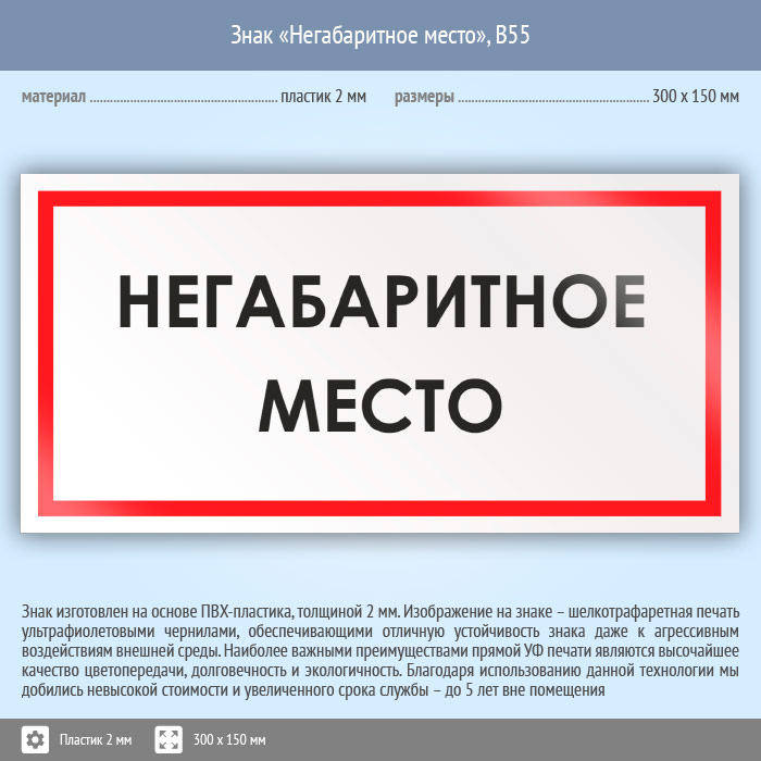 Знак «Негабаритное место», B55 (пластик, 300х150 мм) в Магнитогорске купить