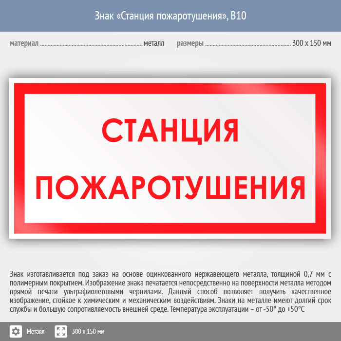 Знак «Станция пожаротушения», B10 (металл, 300х150 мм) в Магнитогорске купить