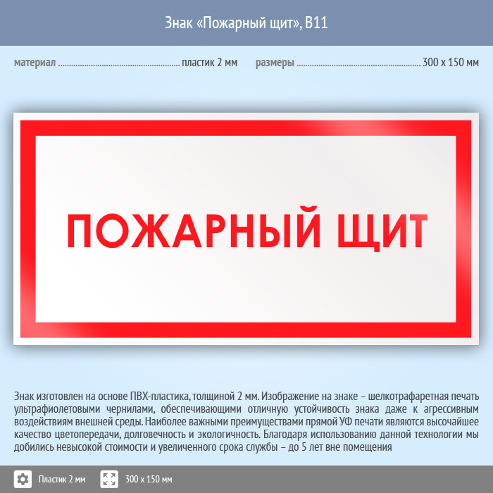 Знак «Пожарный щит», B11 (пластик, 300х150 мм) в Магнитогорске купить