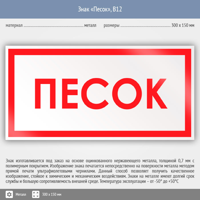 Знак «Песок», B12 (металл, 300х150 мм) в Магнитогорске купить