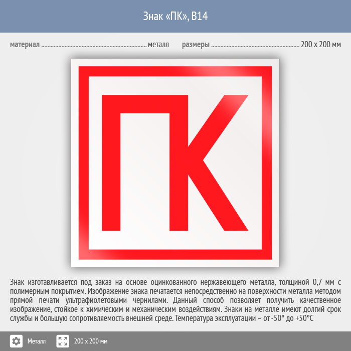 Знак «ПК», B14 (металл, 200х200 мм) в Магнитогорске купить