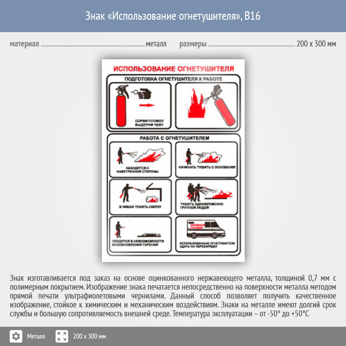 Знак «Использование огнетушителя», B16 (металл, 200х300 мм) в Магнитогорске купить