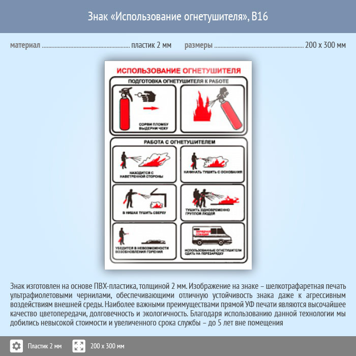 Знак «Использование огнетушителя», B16 (пластик, 200х300 мм) в Магнитогорске купить