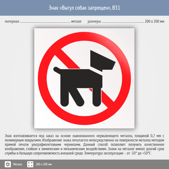 Знак «Выгул собак запрещен», B31 (металл, 200х200 мм) в Магнитогорске купить