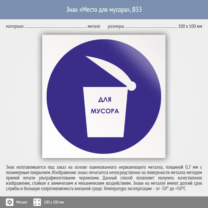 Знак «Место для мусора», B33 (металл, 100х100 мм) в Магнитогорске купить
