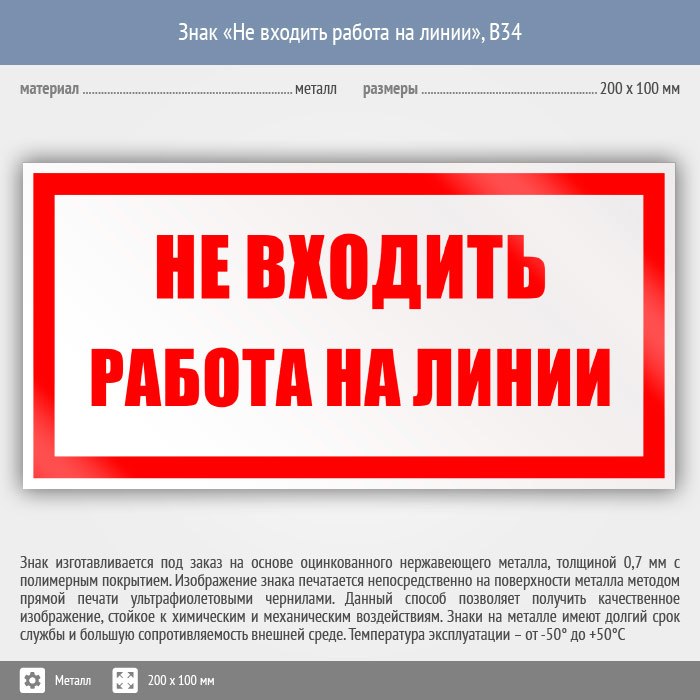 Знак «Не входить работа на линии», B34 (металл, 200х100 мм) в Магнитогорске купить