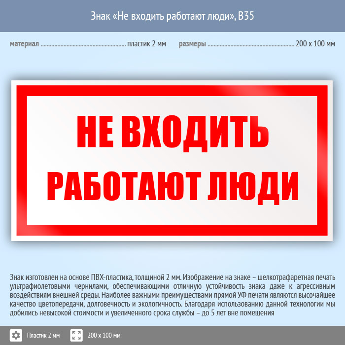 Знак «Не входить работают люди», B35 (пластик, 200х100 мм) в Магнитогорске купить