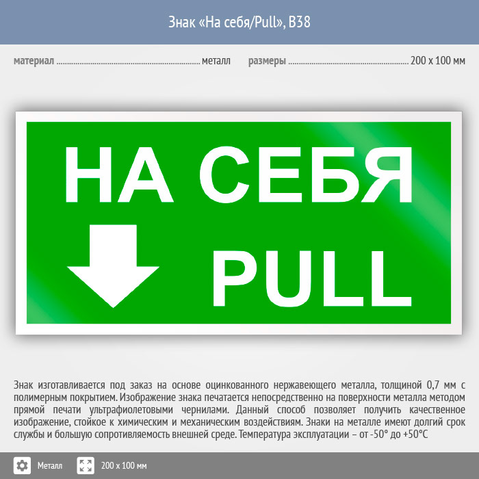 Знак «На себя/Pull», B38 (металл, 200х100 мм) в Магнитогорске купить