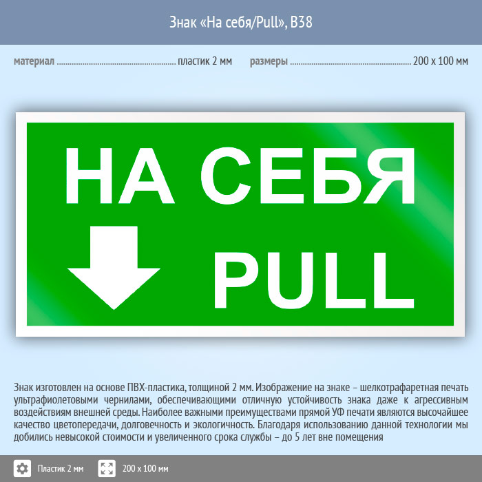 Знак «На себя/Pull», B38 (пластик, 200х100 мм) в Магнитогорске купить
