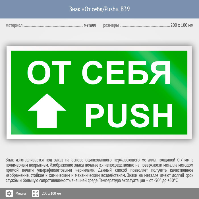 Знак «От себя/Push», B39 (металл, 200х100 мм) в Магнитогорске купить